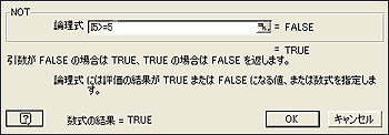 論理関数の[NOT]関数を利用すると、 @[論理式]に条件を入力する事で、[論理式]の条件を満たす値以外という条件を設定する事ができる。 |