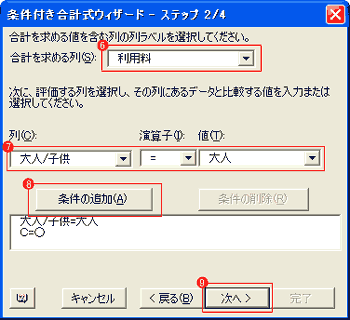 条件付き合計式ウィザードは、ウィザードに従って操作していくだけで、複数の条件が付けられる。しかし、AND条件しか付ける事ができない。