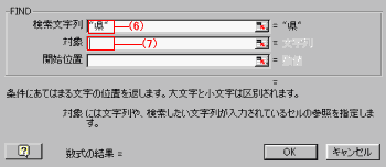 (17)「検索文字列」には゛県”、「対象」はE5、「開始位置」は1と入力し[OK]ボタン。を押す。