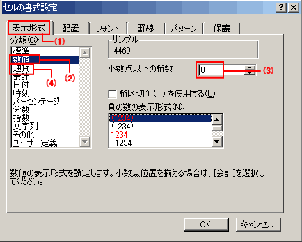 ▼右クリック→[セルの書式設定]→[表示形式]タブ ![]()