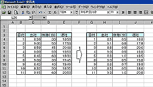 | 数値を時刻のシリアル値に変換して勤務時間を求める |