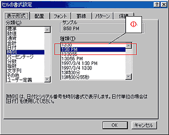 20:00を8:00PMと表示させるには? 午前のデータはAM、午後のデータはPMを表示させるようにするには、時刻の表示形式を(@部分)変更する。