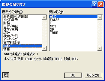 | 書 式 | =AND(論理式1[,論理式2,・・・]) | ||||