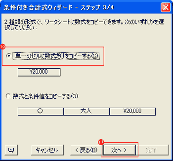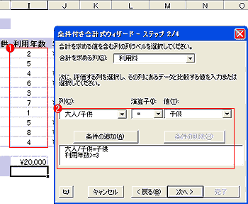 条件付き合計式ウィザードは、ウィザードに従って操作していくだけで、複数の条件が付けられる。しかし、AND条件しか付ける事ができない。